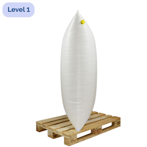 De CargoPlus 918 Stuwzak Level 1 is een hoogwaardige keuze voor het veilig transporteren van hoge of gestapelde pallets. Met afmetingen van 900 mm x 1.800 mm (90 cm x 180 cm) biedt deze stuwzak een uitstekende ondersteuning in de breedte, specifiek ontworpen voor het stabiliseren van europallets. De zak kan ruimtes tot 35 cm opvullen en is dankzij het geavanceerde ventiel eenvoudig herbruikbaar. Door de dikkere lagen is deze stuwzak gecertificeerd door de AAR, wat hem geschikt maakt voor veeleisend treintransport in Canada en de Verenigde Staten.